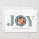 Moderne Eukalyptus Foto Typografie Weihnachtskarte - JOY ist in der modernen fett formatierten Typografie in Salbei grün mit Eukalyptus und Heiligenbeerkranz rund um Ihr Lieblingsjargon enthalten. Die redaktionelle Begrüßung lautet "Einen Urlaub voller Freude wünschen". Alle unsere Liebe, Ihr Familienname und Familienmitglieder. Alle Texte können bearbeitet werden. Der Hintergrund kann auch in eine beliebige Farbe geändert werden. Entworfen von Beverly Bainbridge Magnolia & Thistle