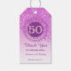 On the back of the gift tag, there is another stylish Pink Wheel number 50 design.