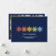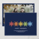 Eine moderne Weihnachtskarte mit einer Reihe von bunten Weihnachtsschneeflocken und familiärem Foto. Minimalistische Typografie. Sauberes einfaches Design. Alle Textbereiche sind personalisierbar. Kontaktieren Sie uns für Hilfe bei der Personalisierung oder Anpassung an Ihre individuellen Wünsche. Gute Ferien!