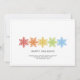 Einfache, moderne Weihnachtskarte mit einer Reihe von bunten Schneeflocken. Minimalistische Typografie. Sauberes einfaches Design. Alle Textbereiche sind personalisierbar. Kontaktieren Sie uns für Hilfe bei der Personalisierung oder Anpassung an Ihre individuellen Wünsche. Gute Ferien!