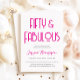 Celebrate your 50th birthday in elegant style with this modern art deco Fifty and Fabulous pink text 50th birthday party invitation. Personalizable with your name and fiftieth birthday party celebration details, this modern combination of bright pink art deco font, clean serif typography and a playful script for the birthday honoree's name makes for a fun yet sophisticated look. All text colors can be changed to anything you wish using the edit menu - a fabulous choice for your fiftieth celebration!