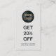 Dieses moderne Firmenlogo, Business Promotional Discount Card ist ideal für kleine Unternehmen. Erstellen Sie Ihre eigene Rabattkarte für Ihr Unternehmen, indem Sie einfach Ihr Firmenlogo und Ihre Geschäftsinformationen hinzufügen. ^**BEISPIEL: Wenn Sie nicht gewollt haben, Ihre Telefonnummer hinzuzufügen, können Sie sie leer verlassen haben. Wenn Sie Hilfe beim Anpassen dieser Vorlage benötigen, dann melden Sie sich bitte an. Ich"helfe Ihnen gerne.