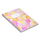 Customized tie dye blooming flowers fashion trend design pattern notebook with school name sticker, for plenty of thoughts, dreams, ideas and knowledge. Modern korean aesthetic orchid floral tie dye pattern in saturated pink, yellow, peach, orange color. Shiburi dye style pattern home decor. Tiedye flower pattern, rainbow tie dye colors