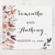 Boho Watercolor Flowers Wedding Invitation. Flowers are watercolors in brown, pink, beige and peach. Flowers are on the left side of the label with wedding couple names and wedding date centered on the label. Wedding details to be customized with your specific wedding information.