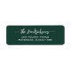 Diese modernen und stilvollen Rücksendeadressen-Aufkleber sind mit ihrem Familiennamen in weißer Schrift und Text auf festlich dunkelgrünem Hintergrund gestaltet.