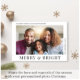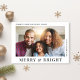 Minimal moderne Weihnachtskarte mit Ihrem Foto und "Merry & Bright" in stilvoller Typografie. Personalisieren Sie mit Ihrem Namen und Gruß in einfacher Typografie.