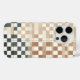 Elevate your tech with this unique four-quadrant geometric phone case. Featuring a sophisticated transition between soft cream, warm tan, and deep slate grey checkered patterns, this design offers a balanced and artistic aesthetic. Perfect for those who love abstract minimalism and architectural color blocking, providing a sleek and professional look for your device.