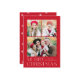 Einfache und elegante Urlaubskarte mit einer 3-Foto-Collage auf der Vorderseite mit "Frohe Weihnachten" in weißer, moderner Schrift auf rotem Hintergrund. Personalisieren Sie die Kartenvorderseite, indem Sie Ihre Fotos und Ihren Namen hinzufügen. Die Karte kehrt sich um, um 4 zusätzliche Fotos und das Jahr mit einem weißen Schneeflockenmuster Hintergrund anzuzeigen. Die Multi-Foto-Ferienkarte ist ideal, um alle Ihre Lieblings-Fotos anzuzeigen!