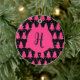 Modern Fuchsia & Black Christmas Tree Monogram Ce Keramik Ornament