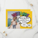 Eine lustige, coole und trendige Retro-Comic Buch inspiriert Foto Save the Date Karte, die die Wanne, zap, pow in jeder Hochzeitsstichtage Ankündigung. Auf der Rückseite befindet sich ein passendes Comic-Polka-Punktmuster, das durch ein eigenes Bild oder ein zusätzliches Foto ersetzt werden kann. Entwickelt von Thisisnotme©