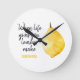 Modern Funny Lemon Yellow Zitat Runde Wanduhr
