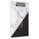 Modern geometrisches Marmor/Schwarz-Monogramm-Logo Klemmbrett