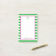 Dieses 4 x 6 Notizblock mit einem grün-weiß gestreiften Hintergrund mit einem rosa Rand und einem grünen 1. Initial in der oberen Mitte und voller Name am unteren Rand ist perfekt für jede Frau, die Sie kennen! Mit seinem spaßigen gestreiften Muster ist klassisch und hübsch und würde wunderbar auf jedem Schreibtisch aussehen und ein perfektes Geschenk für Freunde, Mitarbeiter oder Familie machen.