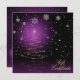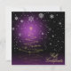 Eine glänzende und schneebedeckte Weihnachtsabbild mit einem glänzenden Weihnachtsbaum und Schneeflocken auf lila Hintergrund.