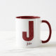 Enjoy a stylish touch of sparkle with this modern glitter monogram mug. The bold glitter-style initial pairs beautifully with a personalized name in a clean, minimal layout. Featuring a matching red handle and interior, this mug is the perfect blend of trendy and elegant. Makes a thoughtful personalized gift for Christmas, winter holidays, birthdays, teachers, coworkers, or anyone who loves modern glitter designs.