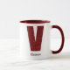 Enjoy a stylish touch of sparkle with this modern glitter monogram mug. The bold glitter-style initial pairs beautifully with a personalized name in a clean, minimal layout. Featuring a matching red handle and interior, this mug is the perfect blend of trendy and elegant. Makes a thoughtful personalized gift for Christmas, winter holidays, birthdays, teachers, coworkers, or anyone who loves modern glitter designs.
