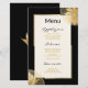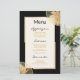 An elegant yet modern design featuring faux gold foil luminous succulents in opposite corners of this wedding menu. A black background .