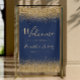 The top and bottom borders of this elegant sign are decorated with gold faux glitter. Customize the text in gold-colored handwriting script and serif fonts on a navy blue background.