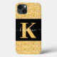 Modern Gold Glitzer Monogram iPhone 13 Case Name iPhone Fall Modernes Black Gold Monogram Feminine Script Name Handy Fall