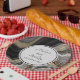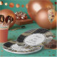 Papierplatte in abstrakter Ausführung mit einem agaten Geodenmineralmuster. Gold, Grau, Weiß und Schwarz setzen sich zusammen und bilden elegante Farbwellen. Ein hellgrauer Kreis mit einem schwarzen Rahmen, der mit dem Text übereinander liegt. Ideal, um einen Hauch von Klasse und Eleganz zu vermitteln.