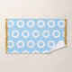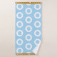 A bold geometric bath towel set featuring a modern circle ring pattern in light blue and white with a distinctive gold border detail. This Modern Gold Light Blue White Circle Ring Pattern Bath Towel Set is designed for contemporary bathrooms, and it brings a clean graphic statement to your everyday space without compromising on style. The crisp contrast of white rings on soft light blue with a warm gold trim creates a sophisticated modern feel. A stylish housewarming or birthday gift for lovers of contemporary design.
