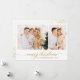 Moderne elegante Script 2 Foto Collage Weihnachtskarten. Diese festliche, minimalistische Weihnachtskarte mit hübschen 2-Gitter-Foto-Collage, Glitzer Konfetti, ein "Frohe Weihnachten" Grußtext, der in einer handgeschriebenen Kalligraphie oder Typografie-Swash-Schwanz-Schriftart in Gold und Weiß geschrieben ist. Auf der Rückseite Glitzer Konfetti Ecken und vorgefertigte Nachricht. Hübsche Grußkarte für Ihre Familie und Freunde in der Winterferienzeit.