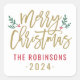 Stilvolle Weihnachtsgunst-Gunststicker mit antiken Goldschrift und Akzenten grüner Äste mit heiligen Blätter und roten Beeren. Personalisieren Sie mit individuelle Name / Familie und Jahrestext. Die weiße Hintergrundfarbe kann geändert werden.