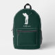 Modern Golfer Silhouette Script Monogram Green Bedruckter Rucksack