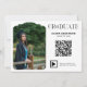 Celebrate your achievement with this modern graduation announcement card, featuring a clean white layout, elegant typography, and a stylish arch photo frame. The built-in QR code adds a unique, interactive touch—perfect for sharing your graduation video or memories. Personalize with your name, photo, and class year for a polished, contemporary keepsake.