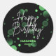 Modern Green Bokeh Gradient Black Happy Birthday Runder Aufkleber