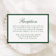 This reception enclosure card is framed by a rich dark green border and features “Reception” in graceful calligraphy with your reception details arranged below in classic serif text. The deep green tone brings depth and formality to the layout, creating a timeless presentation well-suited for estate, traditional, and modern classic wedding settings.