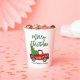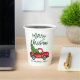 Modern Green Brush Script Frohe Weihnachten Wasserfarbe Vintager roter LKW mit Weihnachtsbaumpapieren Cups