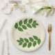 Moderner grüner Lorbeervogel verlasse auf Elfenbeinhintergrund Papier Party Plate. Text kann personalisiert sein. Ideal für Ansammlungen, Geburtstagsparty und mehr.