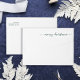 Diese modernen und stilvollen Wrap-around-Labels für Weihnachten in der Rücksendeadresse sind in festlich-grünen Schrift und in weißem Hintergrund mit dem Begriff "Frohe Weihnachten" gekennzeichnet.