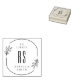 Modern Hand-drawn Leaves Ex Libris Custom Name Rubber Stamp. Featuring an elegant frame with hand-drawn leaves on either side and a rounded border. Easily personalize with your initials and name to create your own bookplate.