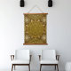 Diese goldene Tapisserie, die Hindu- und buddhistische Mandalaessenzen mit zeitgenössischer Drehung verbindet, ist mit einem Bär umgeben von Blumenblättern, der auf weichem Polyester mit einem rustikalen Holzrahmen für eine harmonische natürliche Dekoration gedruckt wurde.