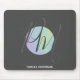Berufliche trendige und moderne Script-Kalligraphie-Monogramm-Illustration mit einem holografischen Regenbogen-Pastellkreis auf einem einfachen grauen Hintergrund.