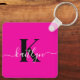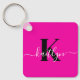 Modern Hot Pink Black Script Monogram Schlüsselanhänger