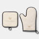 Modern Ivory Gold Script Monogram Ofenhandschuh & Topflappen-Set