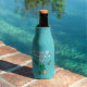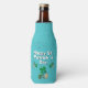 Modernes Kleeblatt Clover Irish Happy St. Patrick`s Day Flasche Cooler. Ein Happy St. Patrick`s Day Text mit irischen Kleeblättern, die auf hellblauem Hintergrund für Glück gezeichnet werden. Sie können den Text ändern.