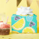 Dieses sich wiederholende Muster zeigt Zitronen, Heidelbeeren und viele Blumenmuster