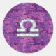 Modern Libra Zodiac Symbol on Fuchsia Digital Camo Runder Aufkleber