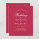 Eine einfache, minimalistische Budget Hochzeitseinladung. Es hat nur weißen Text auf einer modernen Nuance von magenta / rot. Das Wort Hochzeit und die Namen sind in einem eleganten kalligrafischen Skript geschrieben.