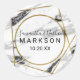 Moderne, schwarz-weiße Marmorsteine und Imitate bedruckten geometrische Dreiecksmuster der Kontur aus Gold, Aufkleber für Hochzeitsfeiern. Dieses klassische und raffinierte Design ist perfekt für das trendige und stilvolle Ehepaar. Personalisieren Sie mit Ihren eigenen Namen und Datum. Das gesamte Foto-Druckdesign.