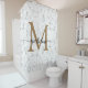 Modern Marble Gold Girly Script Monogram Duschvorhang