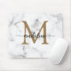 Modern Marble Gold Girly Script Monogram Mouse Pad