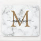 Modern Marble Gold Girly Script Monogram Mousepad