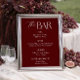 Elevate your reception with this Personalized Modern Maroon Wedding Bar Poster, designed to showcase your wedding bar menu in a refined and stylish way. Perfect as a wedidng bar sign, it complements wedding bar signs, wedding bar signage, and enhances your wedding bar, wedding bar setup, wedding bar decor, and wedding bar ideas. Use it as a wedding bar menu sign featuring signature wedding drinks, wedding drinks, and a curated wedding drinks station with wedding signature drinks. Ideal as a signature drinks sign or signature drink sign, it fits any signature drinks wedding. Inspired by old money wedding, victorian wedding, opera wedding theme, dramatic wedding, burgundy wedding, burgundy wedding theme, green and burgundy wedding, maroon wedding, maroon wedding theme.