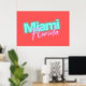 Modernes und farbiges typografisches Design mit "Miami Florida" in Aqua- und rosa Neontext auf Lachs-/Korallenhintergrund