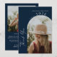 Modern Minimal 2 Photo Script Navy Blue Graduation Dankeskarte